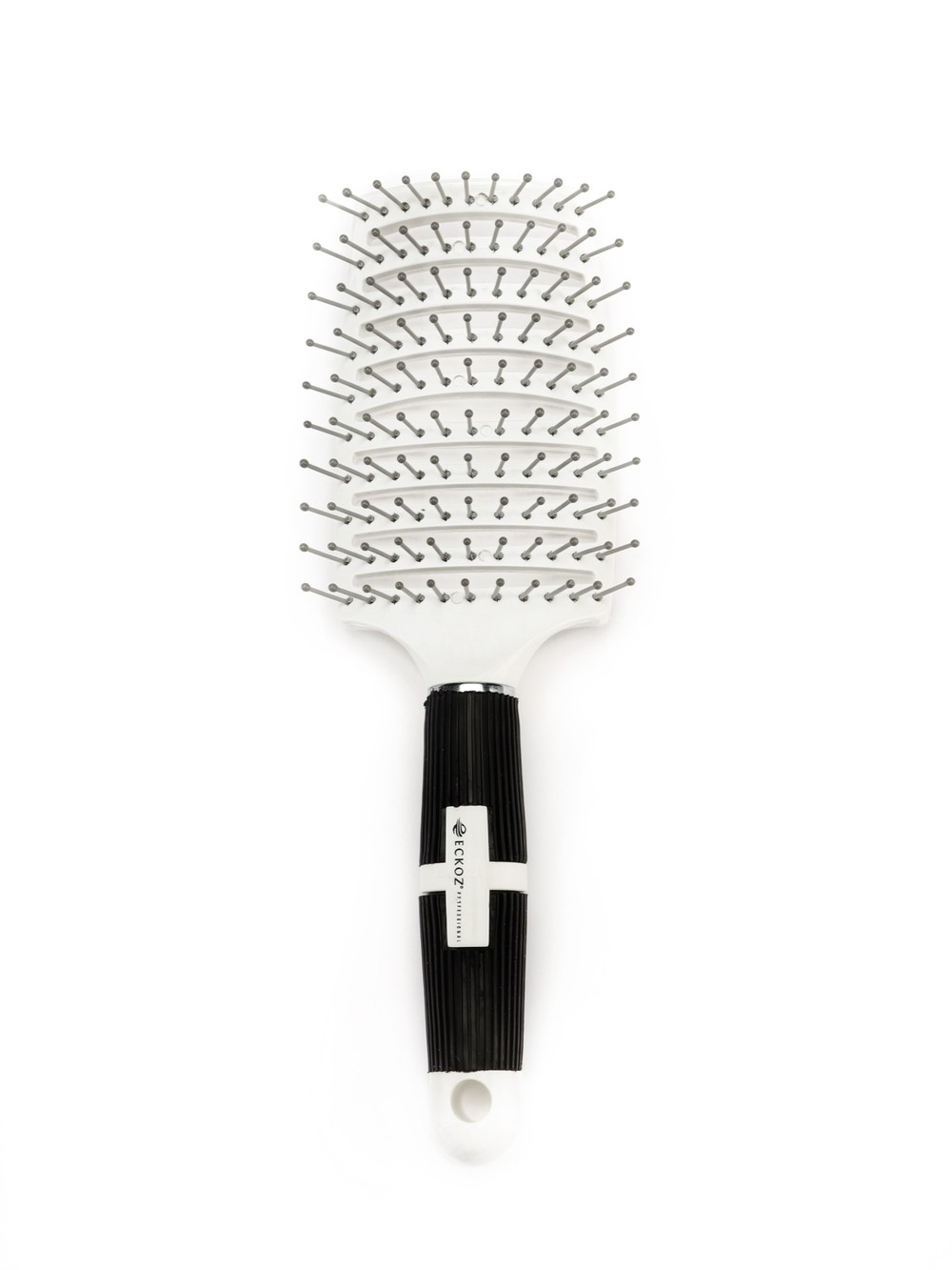 Eckoz Professional Thermal Vent Brush is specially designed to boost the results of each keratin hair treatment. Its innovative, curved design allows more heat to flow directly to the hair shaft, allowing for faster drying time and easy detangling of hair. Complete with a rubber grip handle, this brush is built for comfort and smooth handling.